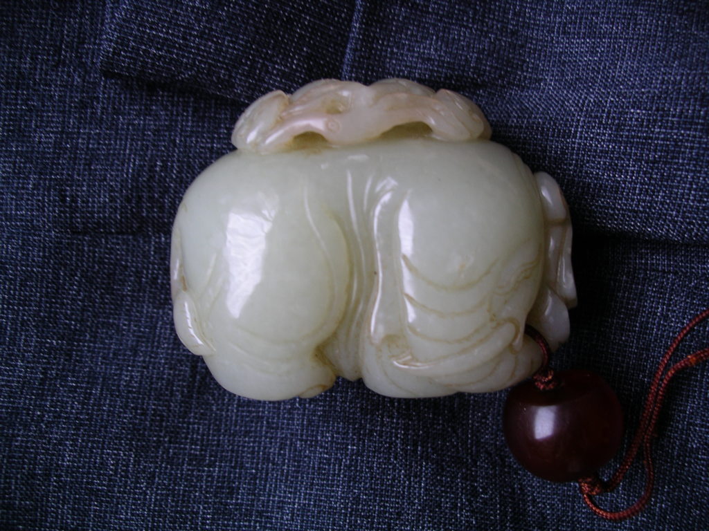 和闐玉雕如意福象擺件--水料