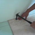 將夾板以手打釘方式,釘在磁磚縫上
